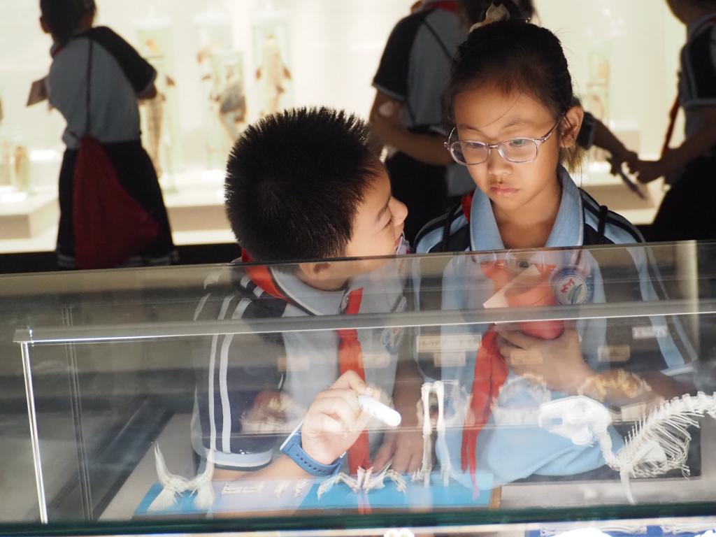 來自天津市南開區義興里小學、天津市第二中學、天津師范大學附屬實驗學校、天津師范大學生命科學學院等單位的同學們紛紛走進天津師范大學生態記憶展館,在思政課教師、輔導員的帶領下開展了一場生動的思政課現場教學。與一件件標本“對話”的過程中,同學們切實感悟生態保護的時代責任,涵養人與自然和諧共生的文明理念,“兩山”理念在實踐育人中生根發芽,為美麗中國建設注入青春力量。