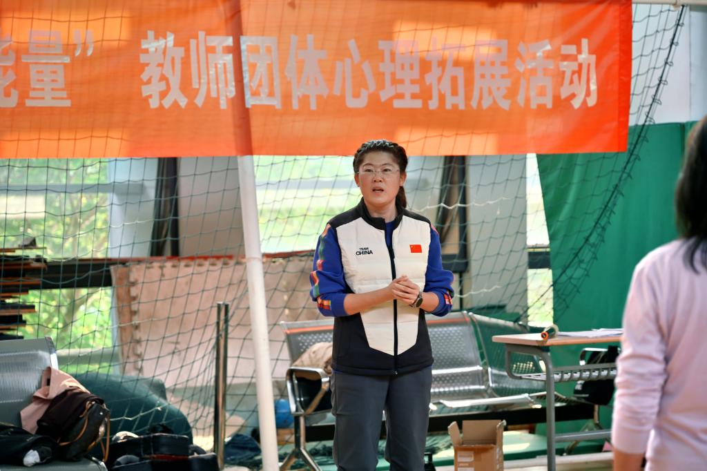 活動邀請學校體育科學學院教師艾麗欣擔任引導,她憑借專業(yè)的運動心理學和團體心理輔導等相關知識,帶領老師們凝心聚力,共同完成了一場深入人心的團隊心靈之旅。活動現(xiàn)場氣氛熱烈,老師們積極配合,通過“松鼠搬家”快速破冰,拉近彼此之間距離,“趣味接力賽”“心有千千結”“情緒垃圾站”“默契穿越”“擊鼓顛球”各環(huán)節(jié)層層遞進,老師們一步步卸下工作中的疲憊,感受心與心的交流,體驗彼此默契配合、團隊協(xié)作的力量,將“情緒包袱”轉化為彼此的共情與鼓勵。在沉浸治愈的舒壓氛圍里釋放內心壓力,以更積極、更強健的心理狀態(tài)為教育工作蓄力。