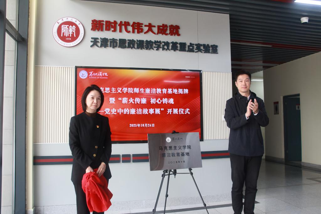黨委教師工作部(教師發展中心)部長(主任)劉紅英為馬克思主義學院廉潔教育師生宣講團授旗。市紀委監委駐校紀檢監察組副組長蘇文鵬為馬克思主義學院廉潔教育基地揭牌。