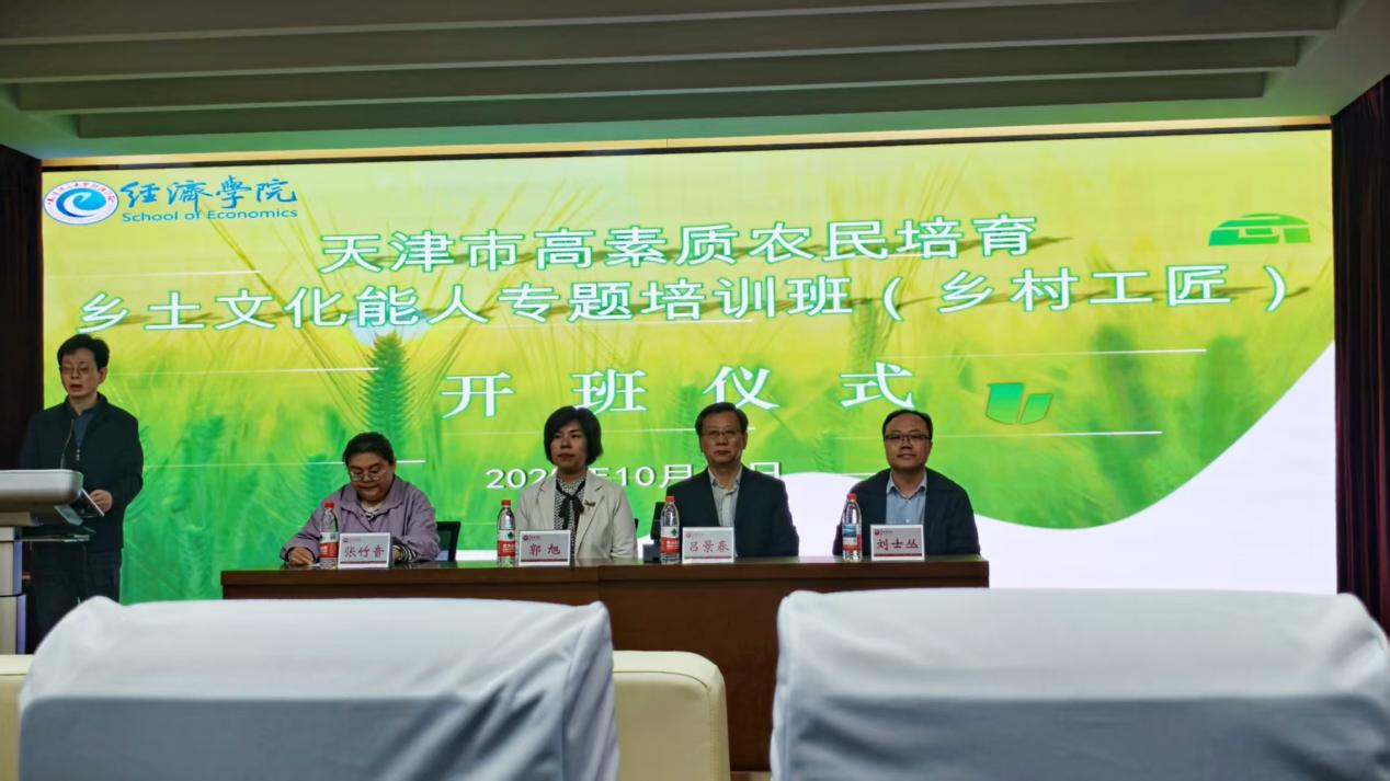 本站訊(通訊員 白帆)為進(jìn)一步提升經(jīng)濟(jì)學(xué)院服務(wù)社會(huì)能力,擴(kuò)大學(xué)院社會(huì)影響力,10月14日,2025年天津市高素質(zhì)農(nóng)民培育鄉(xiāng)土文化能力(鄉(xiāng)村工匠)市級(jí)培訓(xùn)班在天津師范大學(xué)國(guó)家治理研究院報(bào)告廳正式拉開(kāi)帷幕。市農(nóng)業(yè)農(nóng)村委社會(huì)事業(yè)處副處長(zhǎng)劉士叢、副處長(zhǎng)張竹音,有關(guān)行業(yè)專家與來(lái)自全市10個(gè)涉農(nóng)區(qū)的40余名優(yōu)秀農(nóng)民學(xué)員齊聚一堂,共啟鄉(xiāng)村振興人才培育新征程。經(jīng)濟(jì)學(xué)院黨政主要領(lǐng)導(dǎo)出席開(kāi)班儀式。