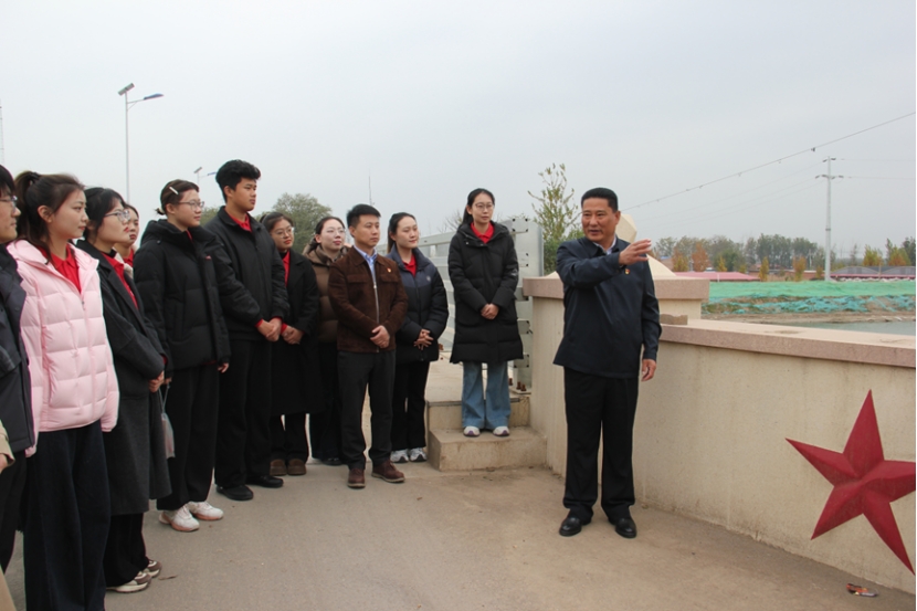 “大伙兒看對岸,那就是正在升級的堤防和泵站,防洪標準提到了50年一遇!”在橫跨子牙河的橋梁上,第六埠村黨委副書記倪國志指著遠處的水利設施,向師生們介紹著。他從習近平總書記調研后的村莊變化講起,用一個個鮮活事例,生動詮釋了黨的二十屆四中全會精神在基層落地生根的生動實踐。同學們邊聽邊記,不時提問。望著眼前加固一新的堤防,一位同學若有所思地說道:“以前在課本上學到‘統籌發展和安全’,總覺得有點抽象。今天站在大堤上,看著這些實實在在的工程,才真正體會到這句話千鈞之重的意義”。