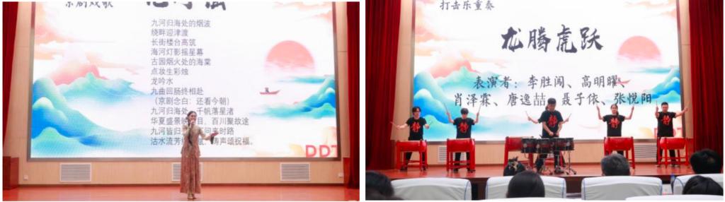 激烈的比賽之余,來自天津京劇院的魏玉慧老師和天津師范大學音樂與影視學院學生為現場觀眾帶來了京劇戲歌《九河謠》以及打擊樂重奏《龍騰虎躍》,歌聲悠揚,鼓點勁爆,充分展示出中華優秀傳統文化之美。