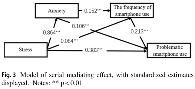 此研究結果指出,青少年壓力通過焦慮和智能手機使用頻率直接或間接地與問題性智能手機使用嚴重程度呈正相關。因此,未來的研究應該關注青少年的焦慮及其與智能手機使用頻率的關系。