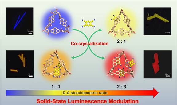 圖1 結構及化學計量比多樣的芘基功能骨架大環共晶用于發光調節