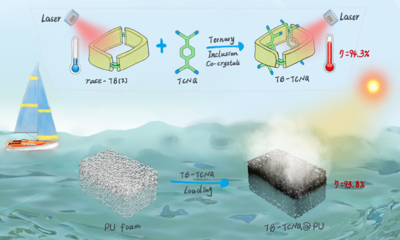 圖1包合共晶工程策略構(gòu)筑高效光熱轉(zhuǎn)換材料用于太陽能驅(qū)動的水蒸發(fā)