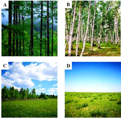 森林-草原過渡帶(Forest-steppe ecotone)是一種由木本和草本群落交替組成的自然或接近自然的特殊生態系統(圖1)。本研究通過在呼倫貝爾林草過渡區生態系統開展樣帶調查,發現生長在林草過渡帶的優勢物種的葉片氮含量,單葉面積以及比葉面積均顯著高于鄰近的森林和草甸草原群落物種,說明該生態系統中的優勢物種具有資源獲取性的生存策略。這一結果強調了在呼倫貝爾過渡帶生態系統中優勢植物功能性狀對生態系統功能的決定性影響。研究結果可用于制定具體的基于性狀的生態管理和恢復計劃,以緩沖氣候變化對林草過渡帶的影響。