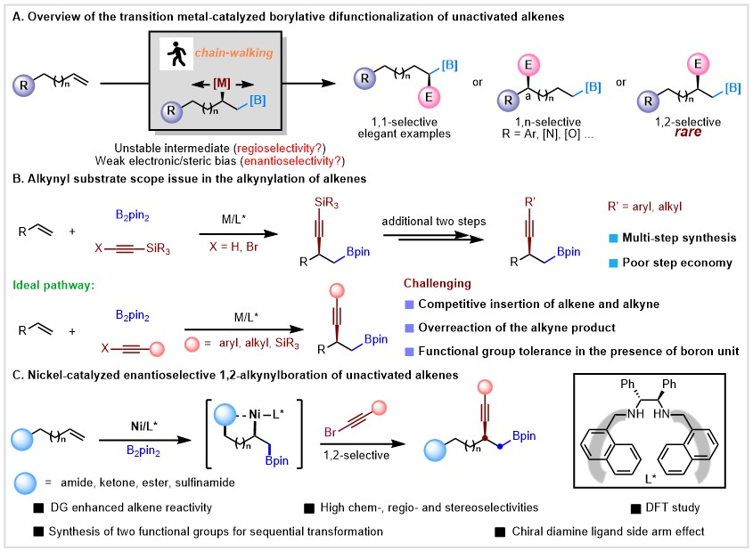 圖1. 非活化烯烴不對(duì)稱1,2-硼炔基化反應(yīng)研究