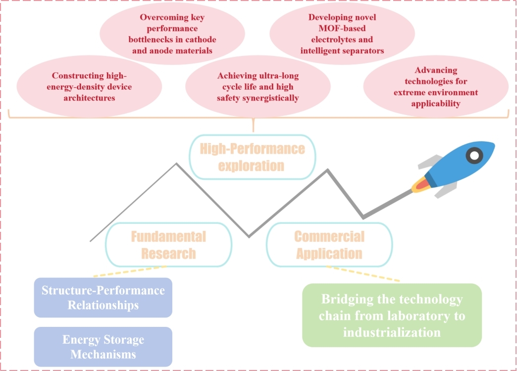 文章指出,盡管MOFs在提升電極比容量、改善離子傳輸動力學、抑制枝晶生長以及增強界面穩定性等方面具有顯著優勢,但其產業化仍面臨來自材料本征特性和器件工程的多重挑戰。需要特別強調的是,要實現高性能MOFs基電池,必須實現各組件之間的協同優化,而非僅僅提升單一材料的性能。并指出關鍵研究方向亟需深入探索的領域。