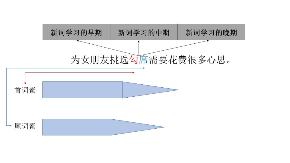 本研究采用眼動追蹤技術,通過兩項平行實驗,探討了首、尾詞素位置概率信息在閱讀詞匯學習中的作用。結果發現,相比于首、尾詞素位置低概率條件,讀者在首、尾詞素位置高概率條件下的注視時間更短、注視次數更少,表明首、尾詞素位置概率信息均有助于讀者在閱讀中切分詞匯。此外,相比于尾詞素,首詞素作用時程更長、更穩定。基于此,我們提出了首、尾詞素位置概率信息在新詞學習中的作用時程(見圖1)。本研究成果為首詞素在中文雙字詞加工中的優勢提供了新的證據,有助于教育者從詞切分的視角開發提升詞匯習得效率的科學途徑。