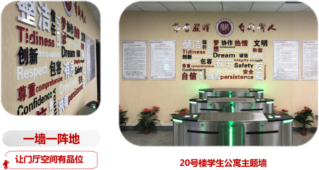 結合公寓實際情況,他總結出“一墻一陣地”“一樓一品牌”和“一處一風景”的公寓環境建設三原則,積極推進學生公寓軟環境建設,美化門廳、走廊、樓外空間,努力建設品位高雅、環境優美、文化濃郁、有利于大學生成長成才的公寓環境。“一墻一陣地”,讓門廳空間有品位,就是在學生公寓19、20、22號樓大廳設置公寓文化主題墻,讓主題墻成為學生公寓閃亮的文化招牌;“一樓一品牌”,就是讓走廊空間有特色,充分發揮學生專業優勢,調動學生參與公寓環境建設的積極性,與基層學院合作,共同打造學生公寓文化長廊,讓走廊的有限空間,充分展現學院風采、公寓新貌、校園文明的無限精彩;“一處一風景”,讓樓外空間有內涵,就是在樓外宣傳欄和景觀展示牌,集中布置疫情防控宣傳、社會主義核心價值觀、勞動實踐育人等專題,將這些內容更好地融入學生生活,落細落小落實,入眼入腦入心。公寓環境的建設體現了他腳踏實地、兢兢業業實干的作風,這也是他不斷銳意進取的動力源泉。