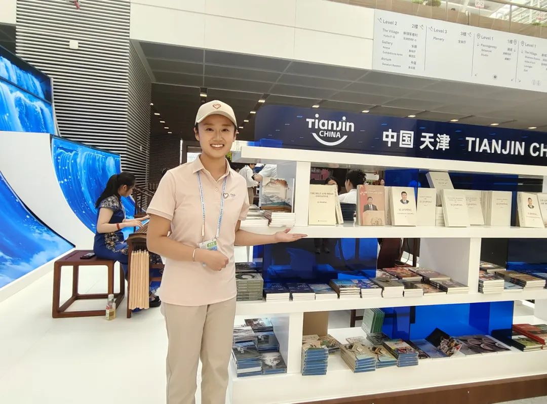 在論壇文化展區(qū),志愿者們化身“文化使者”,為中外嘉賓精選人文社科、經(jīng)濟(jì)科技等領(lǐng)域的經(jīng)典著作。外事采訪口譯崗位上,志愿者們憑借扎實(shí)的雙語功底和跨文化溝通能力,協(xié)助中外媒體完成多場(chǎng)訪談。在攝影記者和采訪媒體身旁,志愿者們提前熟悉拍攝流程和場(chǎng)地布局,快速協(xié)調(diào)機(jī)位、疏導(dǎo)人群,為記者創(chuàng)造最佳拍攝條件。他們的專業(yè)素養(yǎng)和應(yīng)變能力,確保了一個(gè)個(gè)精彩瞬間被完美定格。在南開大學(xué)停車場(chǎng)接駁點(diǎn)和會(huì)場(chǎng)之間,志愿者們輪班值守,頂著烈日引導(dǎo)車輛、協(xié)助嘉賓乘車,高效完成嘉賓接送、車輛調(diào)度、應(yīng)急保障等工作。我校志愿者們以最真摯的微笑傳遞城市溫度,用最專業(yè)的服務(wù)詮釋青春擔(dān)當(dāng)。在每一個(gè)平凡崗位綻放非凡光彩,向世界繪就新時(shí)代天津青年的精神畫卷。