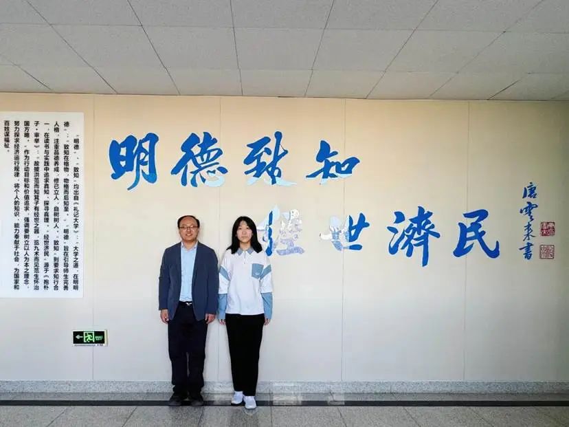 在吳子建老師的指導下,齊婉彤開啟了科研啟蒙之路。每周的學術例會上,從Stata軟件操作到雙重差分模型(DID)構建,從文獻精讀到論文框架設計,吳老師始終秉持“專業寓于思政”的育人理念,教導她對待學術研究要如同琢玉般耐心打磨、孜孜不倦。這種專業與溫度并重、嚴謹與個性并行的指導方式,給予齊婉彤學術視野和價值觀念的雙重提升。“我敢說沒有吳老師的話,至少這個研究生我不會考得如此順利。”